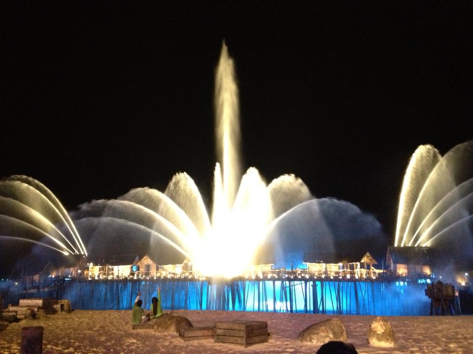 meskipun hujan ringan sempat menghampiri, tapi pertunjukan tetap berlangsung dan kami menggunakan jas hujan yang terbuat dari plastik yang disediakan saat memasuki tempat pertunjukan.